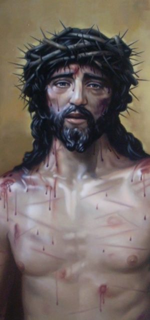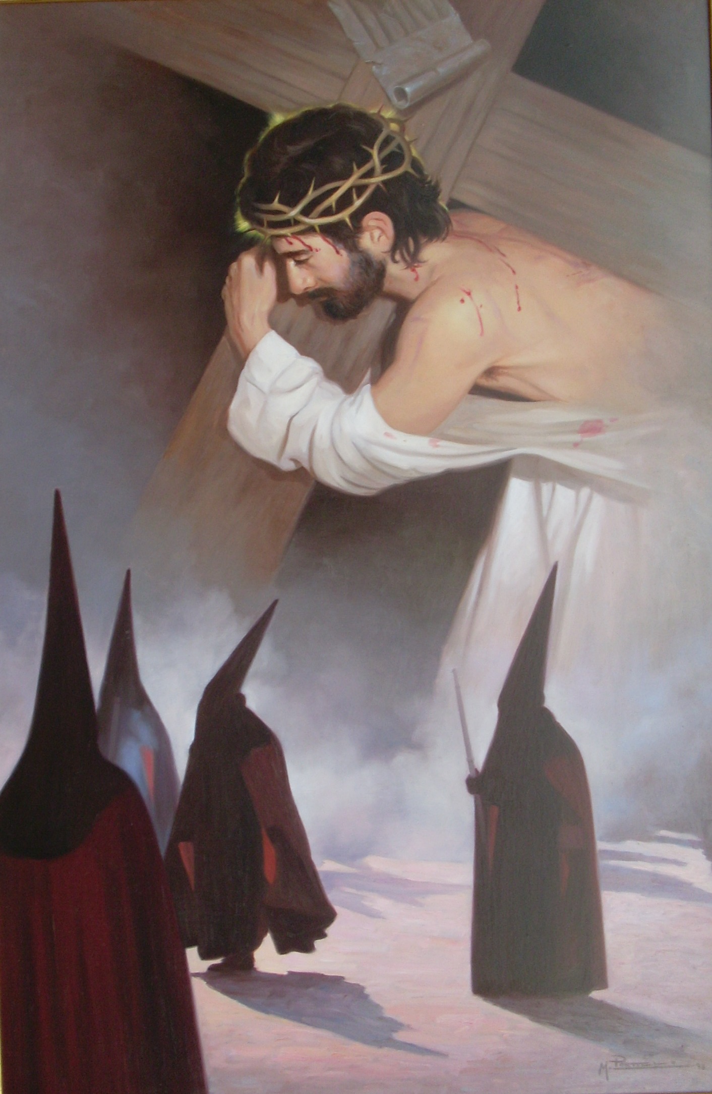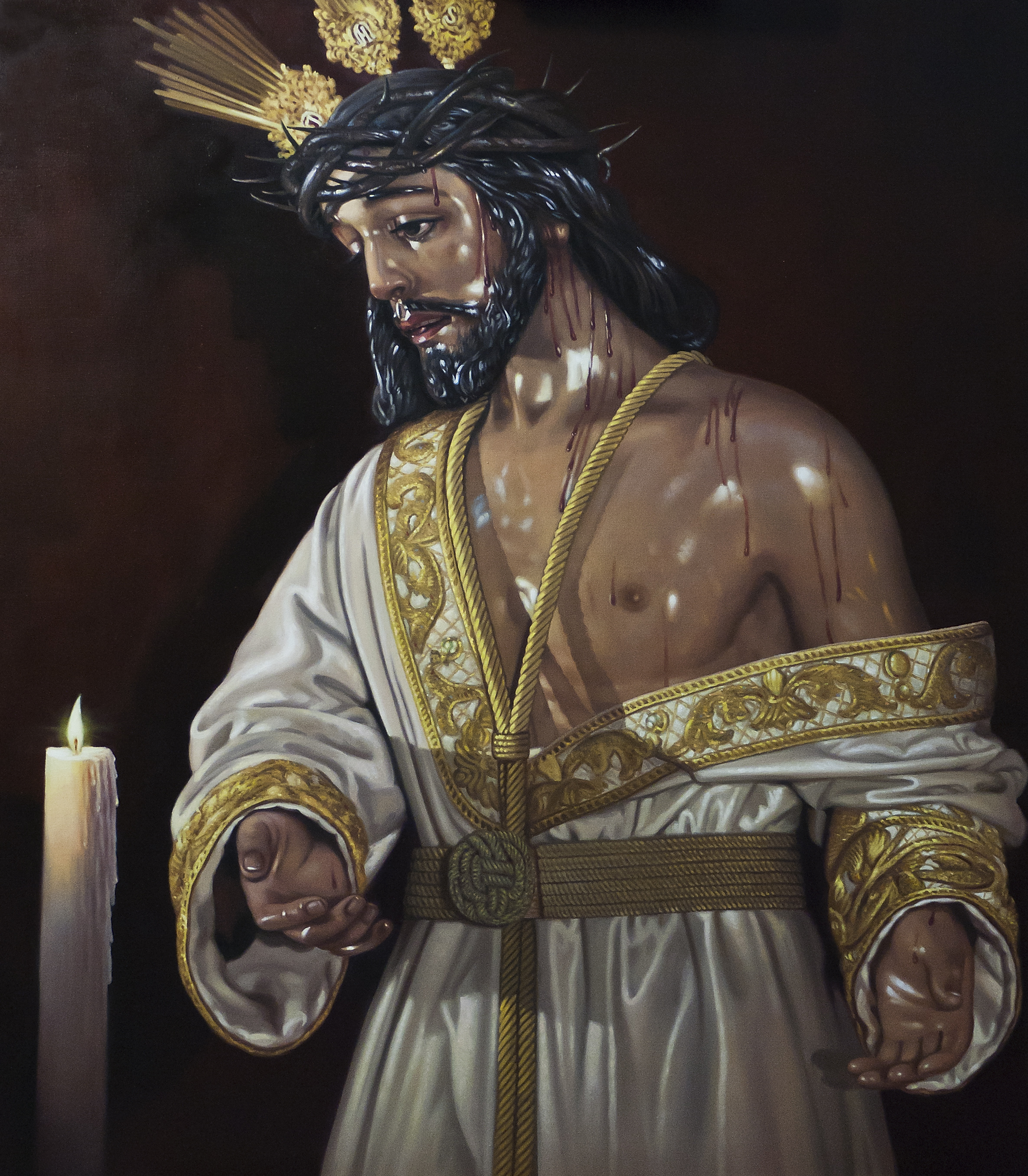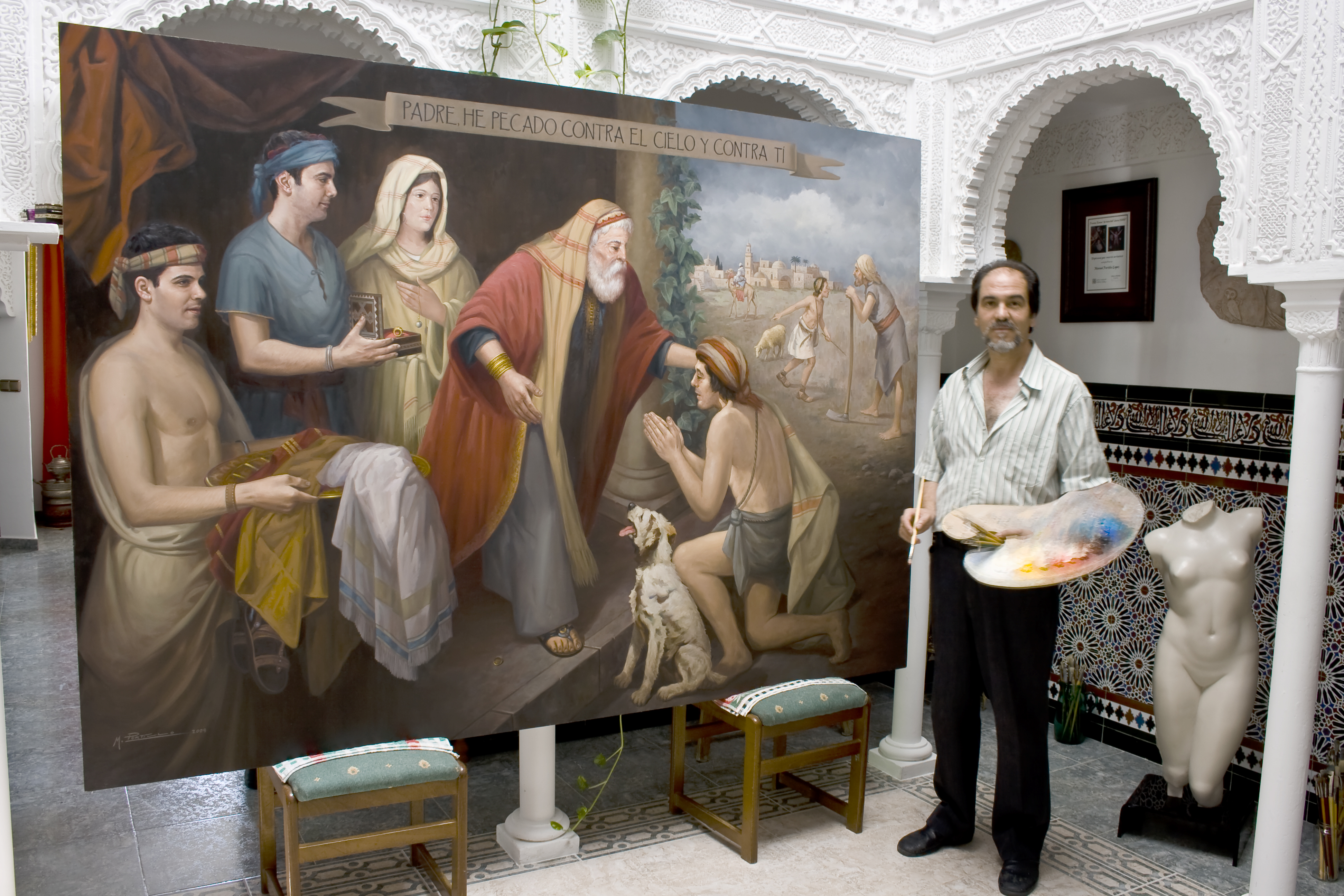 Entre su obra de temática religiosa de gran formato, cabe destacar “El Regreso del Hijo Pródigo” que realizó para la Basílica Menor-Santuario de la Virgen de la Cabeza de Andújar (Jaén) y el tríptico del Altar Mayor de la Iglesia Parroquial de San Juan de Dios de Martos (Jaén): son tres cuadros de tres metros de altura, que representan a Cristo Resucitado (a la izquierda), San Juan de Dios (en el centro) y la Inmaculada Concepción (a la derecha).